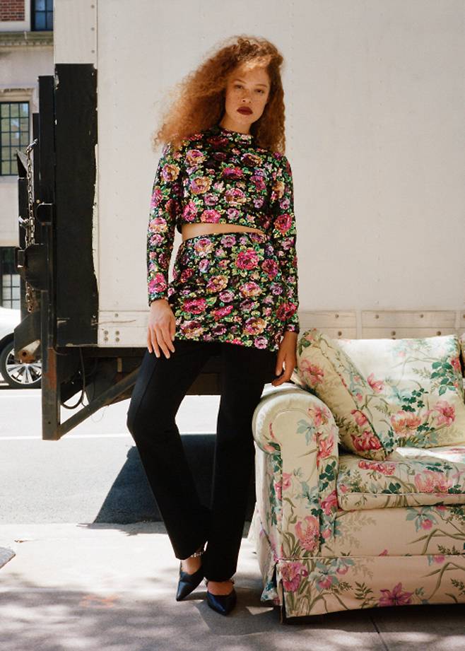 또한 플로럴 시퀸이 블랙 크루넥 니트에 흥미로운 터치를 가미하고, 플로럴 쟈카드 상의와 미니스커트, 혹은 라이트 그레이 체크 톱과 미니스커트로 셋업 스타일링 등 서로 믹스 앤 매치했을 때에 전체적인 균형을 이룰 수 있는 아이템들로 구성했다.