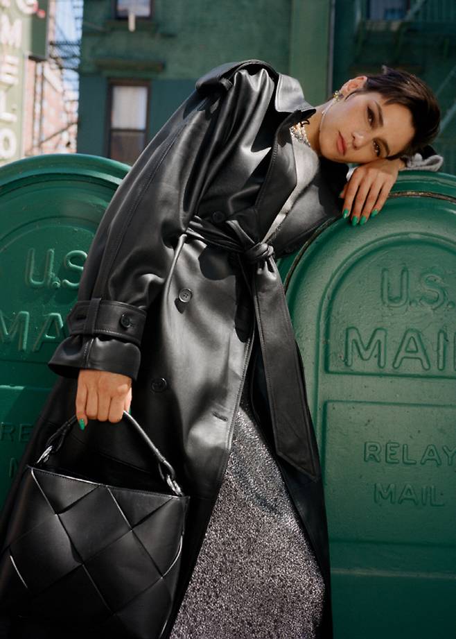 화려한 무드를 원한다면 블랙 레더 블레이저를 믹스 앤 매치하는 것도 좋은 선택지가 될 것이다. 편안한 로브 느낌의 코트와 기하학 패턴의 매력적인 시퀸 미니 드레스 아이템도 눈에 띈다.