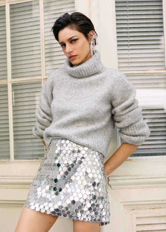 스커트는 부드러운 가죽을 사용하거나 에메랄드 시퀸을 사용해 때론 포근하고 때로는 강렬한 룩을 완성할 수 있다.