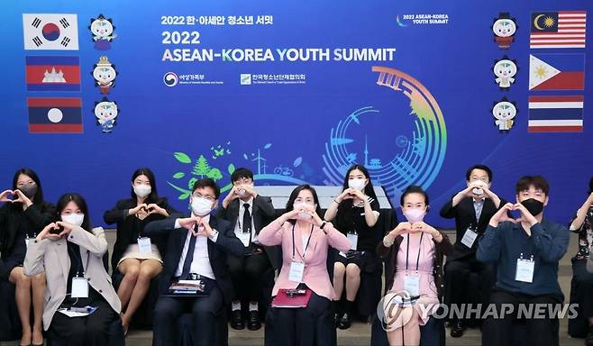 (서울=연합뉴스) 김현숙 여성가족부 장관이 12일 2022 한·아세안 청소년 서밋 폐회식에서 청소년들과 기념 촬영하고 있다. 2022.8.12 [여성가족부 제공. 재판매 및 DB 금지]