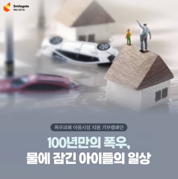 스마일게이트희망스튜디오(이하 희망스튜디오)는 최근 집중호우로 큰 피해가 발생한 아동시설 지원 기부 캠페인을 오는 31일까지 실시한다.