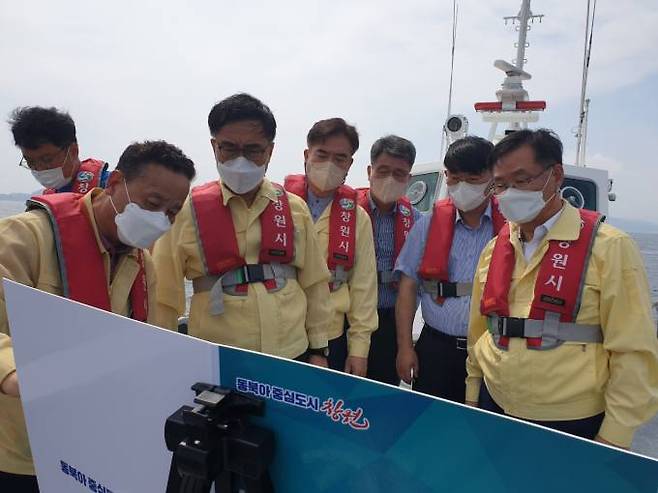 홍남표 창원특례시장은 12일 동북아 중심도시 창원의 관광자원개발 구상을 위해 최형두 국회의원, 해양관련 전문가(수정)와 함께 어업지도선을 타고 해상 순시를 실시했다.
