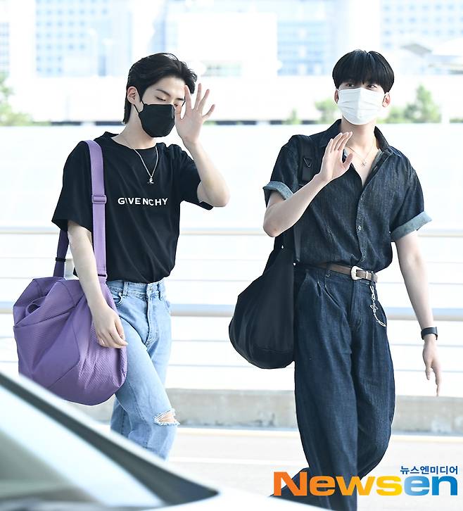 그룹 원어스 시온, 건희가 8월 12일 오후 호주 한류 팝 페스트 시드니 2022 (Hallyu Pop Fest Sydney 2022) 행사 참석 차 인천광역시 중구 운서동 인천국제공항을 통해 호주로 출국하고 있다.