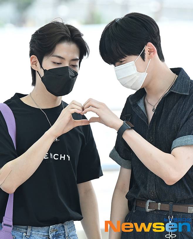그룹 원어스 시온, 건희가 8월 12일 오후 호주 한류 팝 페스트 시드니 2022 (Hallyu Pop Fest Sydney 2022) 행사 참석 차 인천광역시 중구 운서동 인천국제공항을 통해 호주로 출국하고 있다.