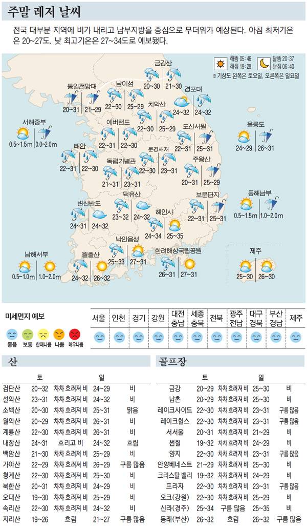 [표] 주말 레저 날씨 (8월 13일~8월 14일)