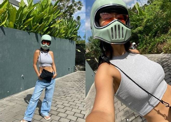특히 개성 넘치는 선글라스와 하이바를 착용해 시선을 사로잡았다.