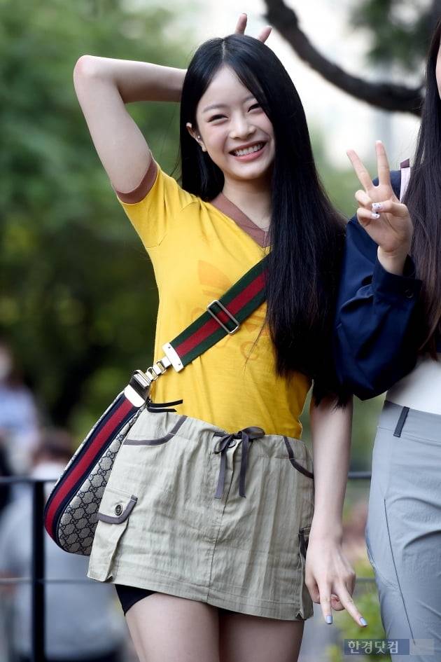 그룹 뉴진스 하니가 12일 오전 서울 여의도 KBS 신관 공개홀에서 열린 '뮤직뱅크' 리허설에 참석해 포즈를 취하고 있다.