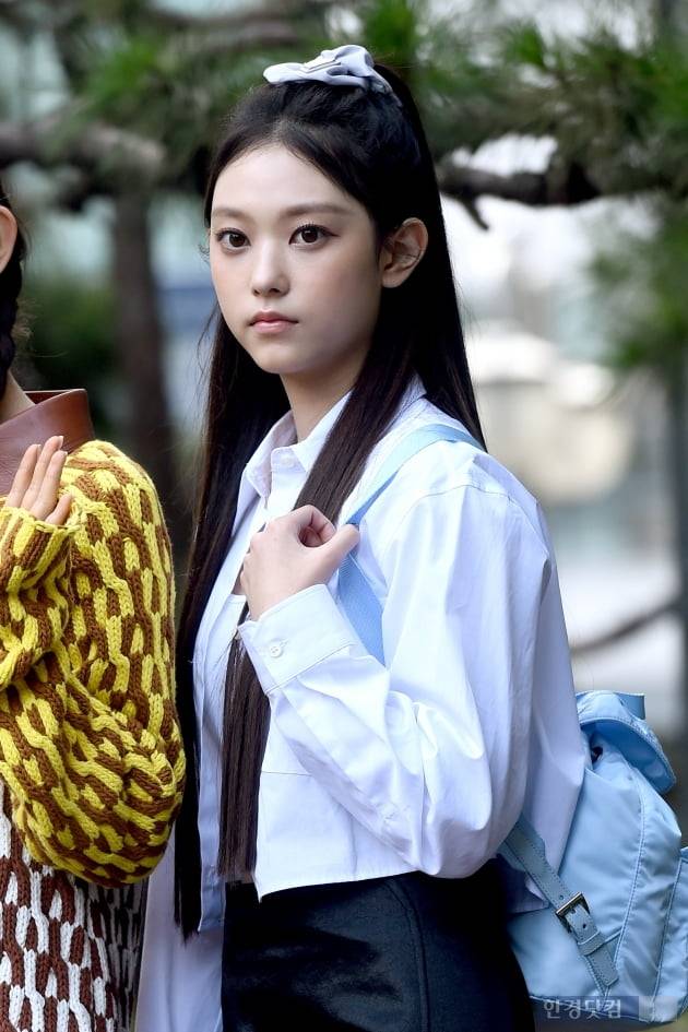 그룹 뉴진스 해린이 12일 오전 서울 여의도 KBS 신관 공개홀에서 열린 '뮤직뱅크' 리허설에 참석해 포즈를 취하고 있다.