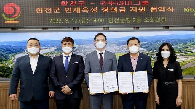 경남 합천군(군수 김윤철)은 12일 합천군청 2층 소회의실에서 귀뚜라미그룹(회장 최진민)과 합천군 인재육성을 위한 장학금을 지원하는 내용의 협약을 체결했다.