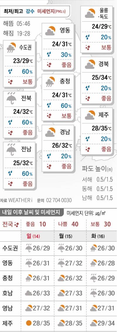 2022년 8월 13일 전국 대부분 비..남부 무더위[오늘의 날씨]