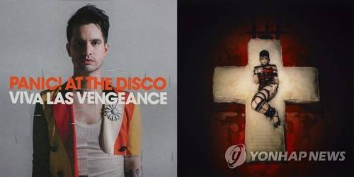 This combination photo shows album art for "Viva Las Vengeance" by Panic at the Disco, left, and the latest album by Demi Lovato. (Fueled by Ramen/DCD2 Records via AP, left, and Island Records via AP) AP PROVIDES ACCESS TO THIS THIRD PARTY PHOTO SOLELY TO ILLUSTRATE NEWS REPORTING OR COMMENTARY ON FACTS DEPICTED IN IMAGE; MUST BE USED WITHIN 14 DAYS FROM TRANSMISSION; NO ARCHIVING; NO LICENSING; MANDATORY CREDIT