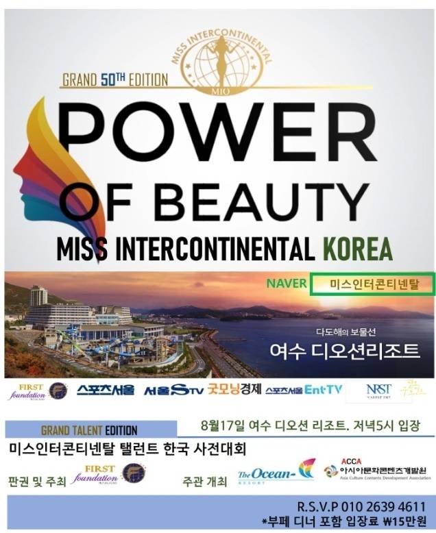세계5대 미인대회 중 하나인 '제50회 미스인터콘티넨탈'의 서막이 오른 가운데 오는 15일 여수 디오션 리조트에서 22년 그랜드에디션 쇼케이스가 개시된다.