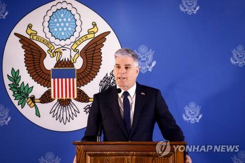epa10117228 US ambassador to Paraguay, Marc Ostfield, speaks during a press conference, at the embassy headquarters, in Asuncion, Paraguay, 12 August 2022. The United States included the Vice President of Paraguay, Hugo Velázquez, and the legal adviser of the Yacyretá binational entity (EBY), Juan Carlos Duarte, on its list of corrupt people, Secretary of State Antony Blinken reported on 12 August. EPA/Nathalia Aguilar