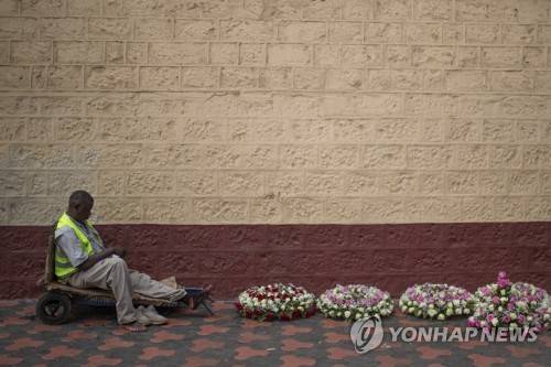 A flower seller waits for customers as he follows provisional election results on a radio, in Nairobi, Kenya, Friday, Aug. 12, 2022. Vote-tallying in Kenya's close presidential election isn't moving fast enough, the electoral commission chair said Friday, while parallel counting by local media dramatically slowed amid concerns about censorship or meddling. (AP Photo/Mosa'ab Elshamy)