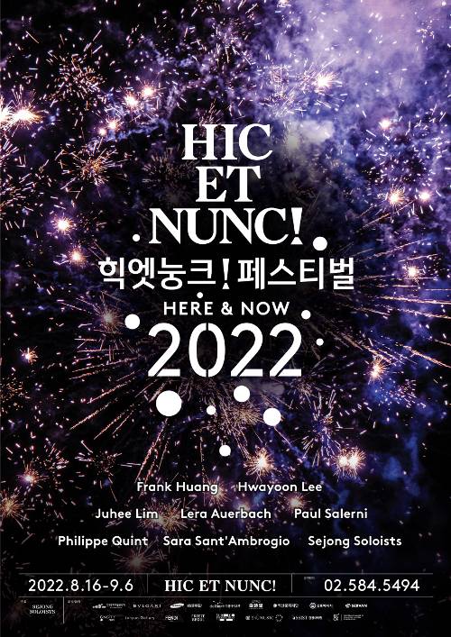 ‘힉엣눙크’(Hic et Nunc)는 라틴어로 ‘지금 그리고 여기’라는 뜻이다. ‘힉엣눙크! 페스티벌’(포스터)은 세계 최정상급 챔버 오케스트라인 세종솔로이스츠(예술감독 강효)가 2017년부터 개최해 왔다. 1년에 1차례 클래식 음악계의 현장을 응축해 전달하는 것 외엔 고정된 지역이나 형식이 없는 ‘비정형성’을 특징으로 한다. 올해는 16일부터 다음 달 6일까지 롯데콘서트홀, 예술의전당 IBK챔버홀 등에서 열린다.