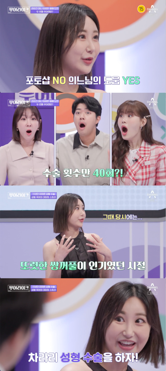 12일 오후 방송된 채널A ‘푸어라이크’에서 약 40번의 성형수술과 시술로 전신에 6,500만 원을 소비한 '성형푸어'가 등장했다.