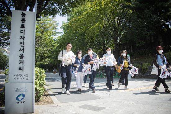 광진구(구청장 김경호)가 제77회 광복절을 기념해 12일 어린이대공원 정문에서 '나라사랑 태극기 나눠주기 캠페인'을 개최했다.