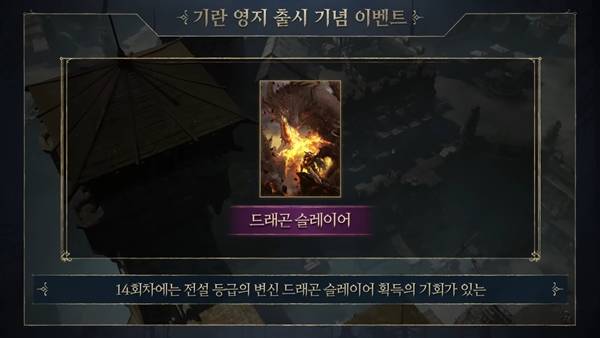 엔씨는 먼저 사전 예약 이벤트부터 소개했다. 사전 예약을 진행한 유저들은 '기란 영지 탐험 증표 아이템'을 사용해 출석 체크를 진행하면 다양한 보상을 받는다. 출석 체크를 14회차까지 진행하면 전설 등급의 변신 드래곤 슬레이어 획득의 기회가 있는 '희귀한 전설 변신 카드(이벤트)'를 제공한다.