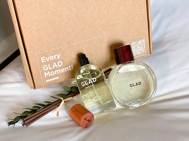 글래드 전용상품에는 글래드 호텔 로비에 들어서면 느낄 수 있는 향을 담은 '글래드 포레스트 디퓨저'와 홈테리어 필수품 '글래드 룸스프레이', 그린 루이보스를 중심으로 과즙 가득한 망고,