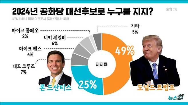 이 조사에서 공화당 지지 응답자들의 절반 이상은 2024 대선 후보로 트럼프 말고 다른 사람을 원하는 것으로 나타났다.