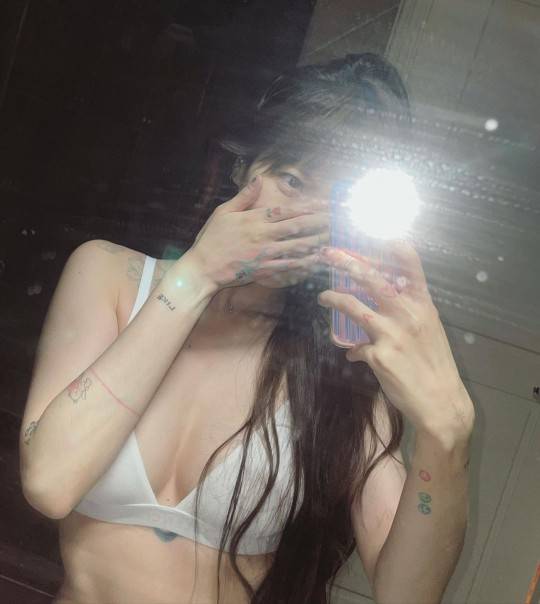 공개된 사진에는 흰색 속옷 상의를 입고 거울 셀카를 찍는 현아의 모습이 담겼다. 몸 군데군데 새겨진 작은 타투와 함께 글래머러스한 몸매가 눈길을 끈다.