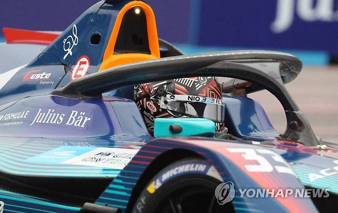 (서울=연합뉴스) 김도훈 기자 = 13일 서울 송파구 잠실올림픽주경기장 일대에서 열린 '2022 하나은행 서울 E-프리(E-Prix)' 15라운드 두번째 연습 주행에서 니오 333 FE 팀의 댄 틱텀(영국)가 트랙을 질주하고 있다. 2022.8.13