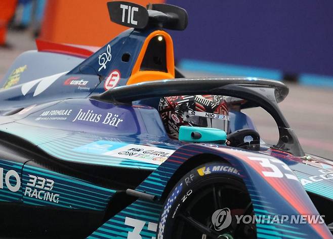 (서울=연합뉴스) 김도훈 기자 = 13일 서울 송파구 잠실올림픽주경기장 일대에서 열린 '2022 하나은행 서울 E-프리(E-Prix)' 15라운드 두번째 연습 주행에서 니오 333 FE 팀의 댄 틱텀(영국)가 트랙을 질주하고 있다. 2022.8.13
