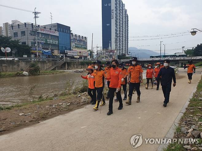 사진은 남 경기도 소방재난본부장이 경기 광주 의용소방대원들과 수색에 나선 모습. 2022.8.13 [경기도 소방재난본부 제공. 재판매 및 DB 금지]