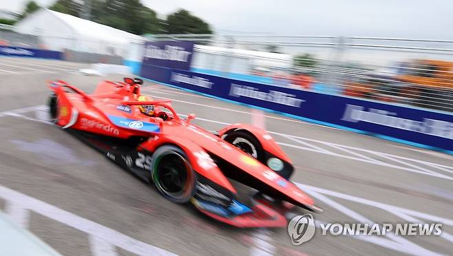 (서울=연합뉴스) 김도훈 기자 = 13일 서울 송파구 잠실올림픽주경기장 일대에서 열린 '2022 하나은행 서울 E-프리(E-Prix)' 15라운드 두번째 연습 주행에서 DS 테치타의 장에릭 베르뉴(프랑스)가 트랙을 질주하고 있다. 2022.8.13