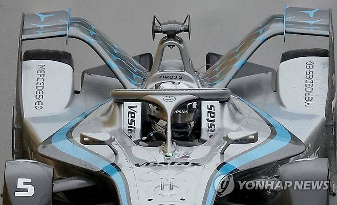 (서울=연합뉴스) 홍해인 기자 = 13일 서울 송파구 잠실올림픽주경기장 일대에서 열린 '2022 하나은행 서울 E-프리(E-Prix)' 15라운드 예선에서 14라운드까지 시즌 챔피언 자리를 지키고 있는 메르세데스-EQ 포뮬러E 팀의 스토펠 반도른(벨기에)의 경주차가 질주하고 있다.
