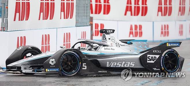 (서울=연합뉴스) 김도훈 기자 = 13일 서울 송파구 잠실올림픽주경기장 일대에서 열린 '2022 하나은행 서울 E-프리(E-Prix)' 15라운드 예선전에 출전한 메르세데스-EQ 포뮬러E 팀의 스토펠 반도른(벨기에)이 레이스를 펼치고 있다. 2022.8.13