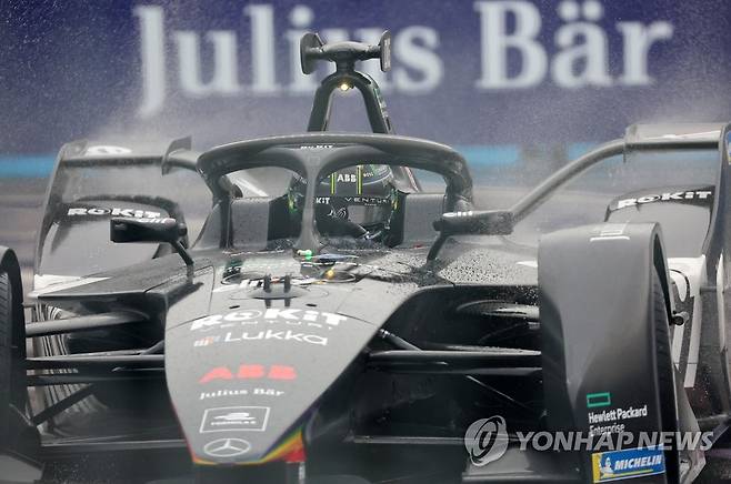 (서울=연합뉴스) 김도훈 기자 = 13일 서울 송파구 잠실올림픽주경기장 일대에서 열린 '2022 하나은행 서울 E-프리(E-Prix)' 15라운드 예선전에 출전한 로킷 벤추리 레이싱의 루카스 디 그라시(브라질)가 레이스를 펼치고 있다. 2022.8.13