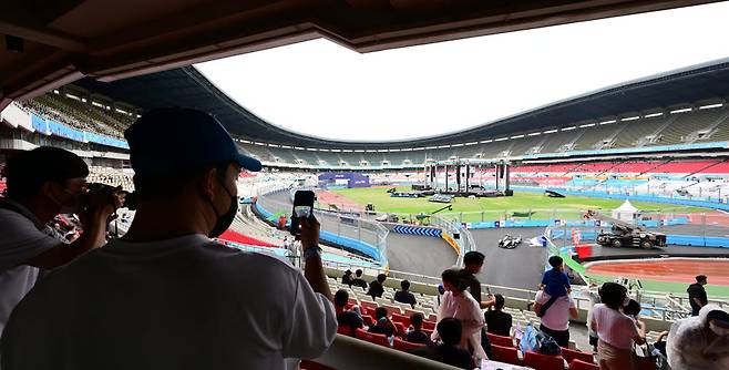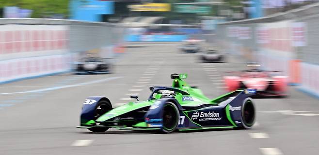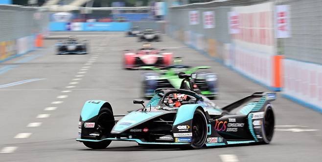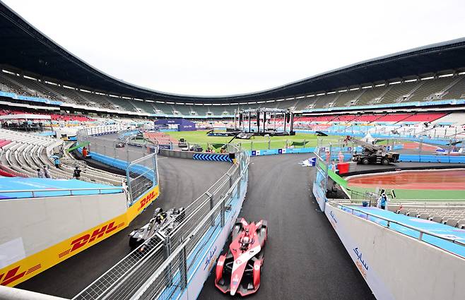 '2022 하나은행 서울 E-프리(E-Prix)' 15라운드가 13일 서울 잠실종합운동장 일대에서 열렸다. 서울 E-프리는 세계 최고 전기차 경주 대회인 포뮬러E 월드챔피언십의 올 시즌 마지막 대회로 15, 16라운드 경기가 펼쳐진다. 선수들이 연습 주행을 하며 코스를 익히고 있다.