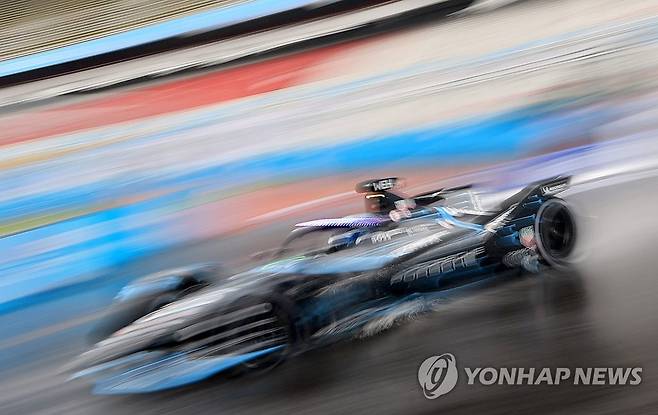 (서울=연합뉴스) 홍해인 기자 = 13일 서울 송파구 잠실올림픽주경기장 일대에서 열린 '2022 하나은행 서울 E-프리(E-Prix)' 15라운드 예선에서 태그호이어 포르쉐 포뮬러E 팀의 파스칼 베를라인이 주경기장 내 트랙을 돌고 있다.
