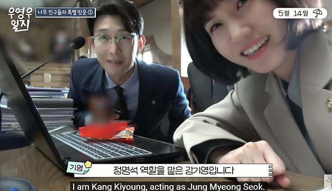 카메라를 발견하고 인사하는 정명석 역의 강기영과 미소를 지으며 인사하는 권민우 역의 주종혁. 특히 강기영은 “정명석 역의 강기영 입니다”라며 특유의 젠틀한 미소를 지으며 인사를 하고는 “근데 이거 출연료 줘?”라는 농담을 던지며 박은빈과 주종혁을 빵 터지게 만들었다.
