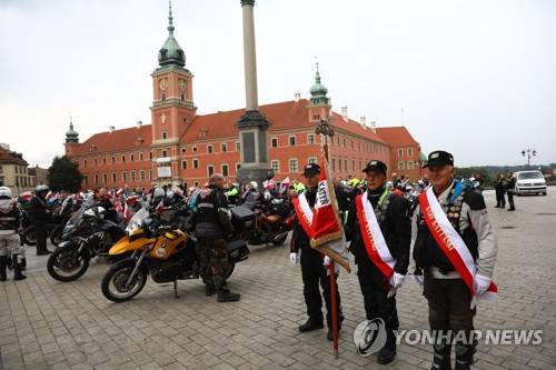 epa10118333 Participants at the start of the XXII International Motorcycle Rally of Katyn named after Commander Wiktor Wegrzyn at the Castle Square in Warsaw, Poland, 13 August 2022. This year the motorcycling rally goes through the Czech Republic, Austria, Romania, Hungary, Bulgaria, Moldova and Ukraine. EPA/RAFAL GUZ POLAND OUT