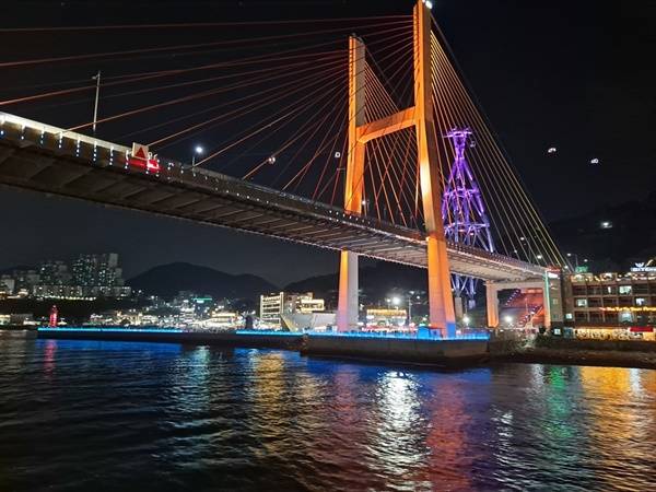 | ▲ 유람선에서 바라본 여수 거북선대교 야경이다. |
