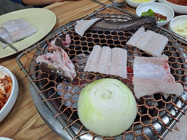 | ▲ 참숯에 구워 먹는 붕장어소금구이다. 여수의 맛 하면 장어구이를 빼놓을 수가 없다. |