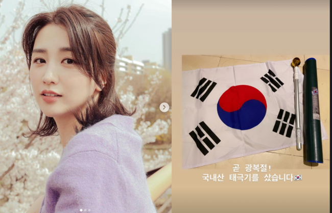 13일, 박하선은 자신의 SNS에 “곧 광복절! 국내산 태극기를 샀습니다"라는 글과 함께 한 장의 사진을 게재했다. 공개된 사진 속엔 태극기와 태극기를 거는 봉, 그리고 이 둘을 넣는 함이 보인다.