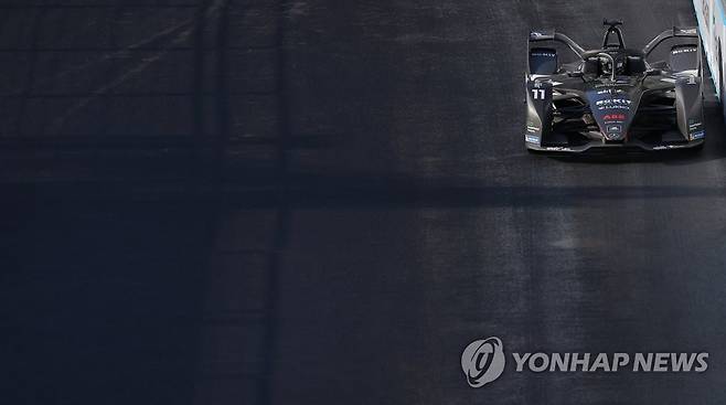 (서울=연합뉴스) 김도훈 기자 = 13일 서울 송파구 잠실올림픽주경기장 일대에서 열린 '2022 하나은행 서울 E-프리(E-Prix)' 15라운드 본경기에서 3위를 차지한 로킷 벤추리 레이싱의 루카스 디그라시(브라질)가 레이스를 펼치고 있다. 2022.8.13