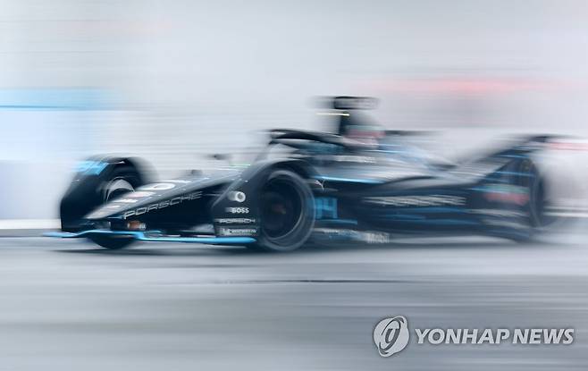 (서울=연합뉴스) 김도훈 기자 = 13일 서울 송파구 잠실올림픽주경기장 일대에서 열린 '2022 하나은행 서울 E-프리(E-Prix)' 15라운드 본경기에서 태그호이어 포르쉐 포뮬러E 팀의 파스칼 베를라인(독일)가 트랙을 질주하고 있다. 2022.8.13