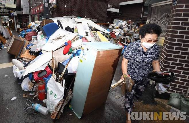 신사로에서 세탁소를 운영 중인 최영철(58) 씨는 “젊어서부터 이곳에서만 세탁소를 34년간 운영했다. 그동안 3차례 물난리를 겪었지만 이번처럼 큰 피해를 당한 것은 처음”이라며 “세탁 기계부터 스팀건조기, 냉장고, 손님들이 맡긴 의류까지 피해가 이만저만이 아니다. 정부의 조속한 대책을 바란다”고 말했다.