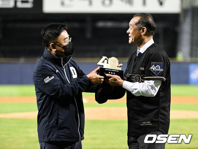 김태룡 단장,'박철순 선수! 레전드 40인 축하드려요' [사진]