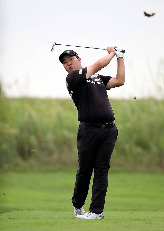 [서울=뉴시스] 조수정 기자 = 13일 전남 영암군 사우스링스영암(카일 필립스코스)에서 제4회 우성종합건설 오픈 3라운드 김찬우가 1번홀 세컨아이언샷 하고 있다. (사진=KPGA 제공) 2022.08.13. photo@newsis.com