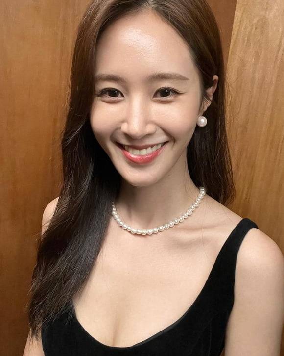 공개된 사진 속 유리는 블랙 원피스에 진주 목걸이를 매치한 모습. 유리만의 고급스럽고 아름다운 미모가 눈에 띈다.