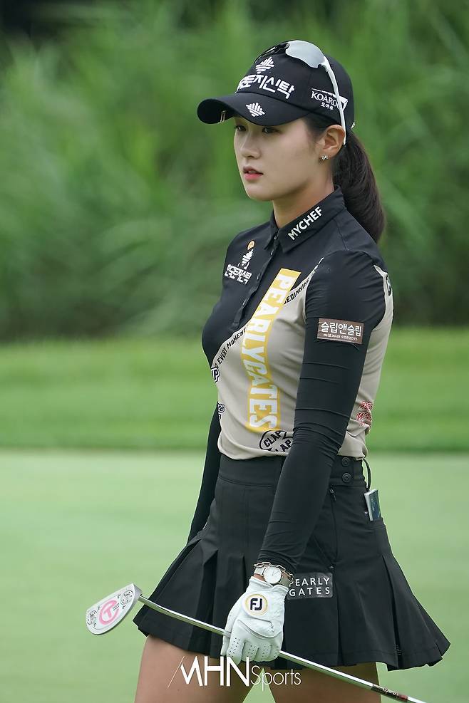박현경(22.한국토지신탁)이 11번홀 그린 버디 퍼트를 놓치며 아쉬워하고 있다.