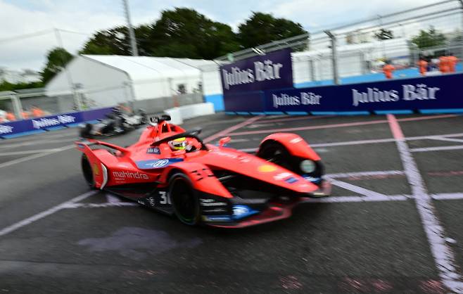 '2022 하나은행 서울 E-프리(E-Prix)' 15라운드가 13일 서울 잠실종합운동장 일대에서 열린 가운데 레이스 초반부터 선두권을 형성한 마힌드라 레이싱의 올리버 롤랜드(앞)와 로킷 벤추리 레이싱의 루카스 디 그라시가 선두를 쫓기위해 질주하고 있다. 서울 E-프리는 세계 최고 전기차 경주 대회인 포뮬러E 월드챔피언십의 올 시즌 마지막 대회로 15, 16라운드 경기가 펼쳐진다.