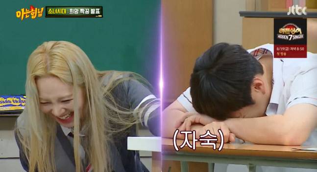 이진호가 충격으로 책상에 엎드린 가운데 효연은 "사석에서는 재밌고 그런데 '아형'에서는 너무 조용해서"라고 이유를 밝혀 폭소를 자아냈다.