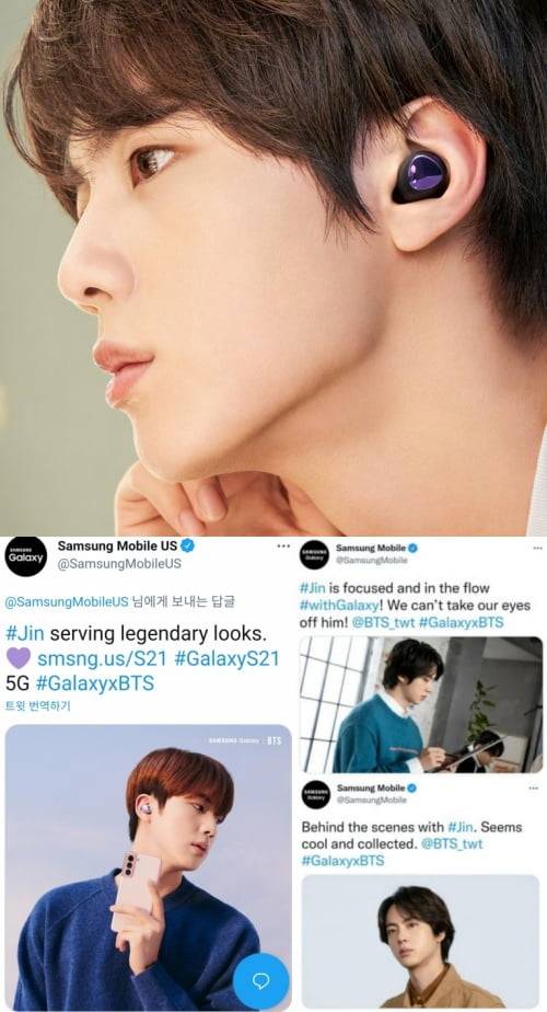 삼성 모바일 공식 계정도 진의 사진과 함께 "비하인드 신에서 진은 멋지고 차분해 보입니다", "진은 갤럭시에 집중하고 몰입해 있지만 우리는 진에게서 눈을 뗄 수 없습니다"라는 문구를 게시, 그의 아름다운 미모에 대한 찬사를 아끼지 않았다.