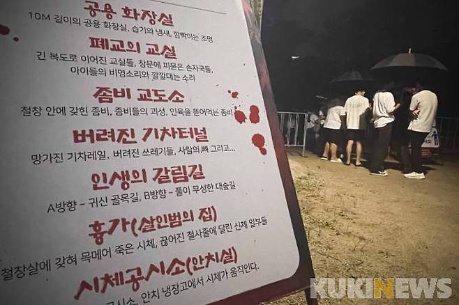 호러 트레킹 체험은 약 300m 구간으로 공용 화장실, 폐고의 교실, 좀비 교도소, 버려진 기차터널, 인생의 갈림길, 흉가(살인범의 집), 시체공시소(안치실) 등 7가지 주제로 마련됐다.